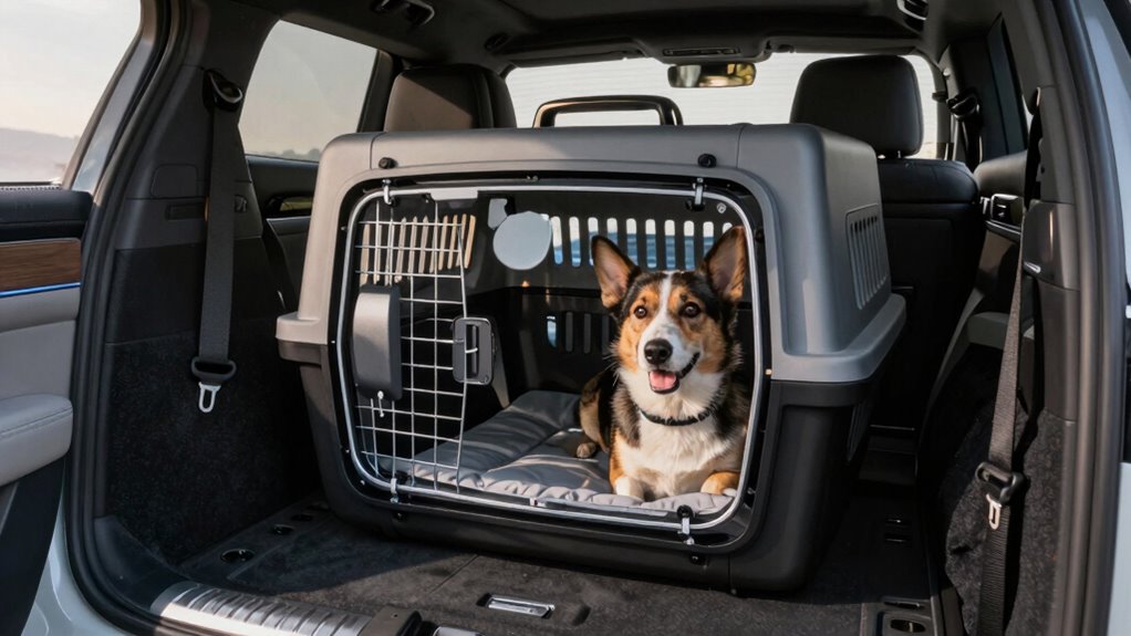 Beim Wählen eines Hundekoffers für Reisen im SUV achte ich auf die richtige Größe und Passform, um meinen Hund sicher und komfortabel zu halten. Sicherheitsmerkmale wie stabile Riegel und robuste Materialien sind unerlässlich, ebenso wie gute Belüftung für den Luftaustausch. Ich berücksichtige auch die Tragbarkeit, Haltbarkeit und wie leicht der Koffer verstaut werden kann, wenn er nicht in Gebrauch ist.